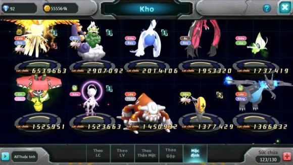 MÃ : #TTS4609 - SV 1595 - HOOH BÁ CHỦ THẦN GIÓ LUGIA YVETAL TAPU BULU MEW Y