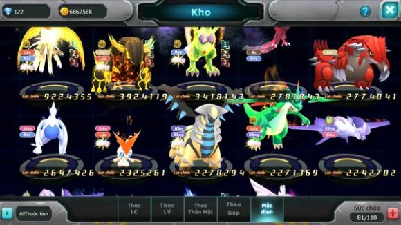 MÃ : #TTS4655 - SV 1602 - HOOH BÁ CHỦ QVLD BC THẦN GIÓ BC YVETAL GROUDON NHIỀU PET HT